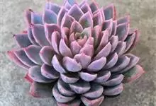 紫珍珠是景天科石莲花属的多年生肉质草本植物。植株中小型;叶片肉质,匙形,呈莲座状紧密排列;叶片粉紫色,叶缘呈粉白色,光照充足时颜色亮丽,不足时叶色会呈现深绿色或灰绿色,叶面光滑,被轻微白粉,…全部>>