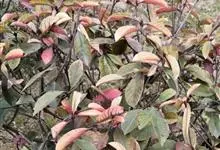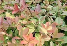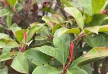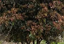 红叶石楠 是蔷薇科,石楠属杂交种,为常绿小乔木或灌木,乔木高可达5米、灌木高可达2米。叶片革质,长圆形至倒卵状、披针形,叶端渐尖,叶基楔形,叶缘有带腺的锯齿,花多而密,复伞房花序,花白色,梨果黄红色,…全部>>