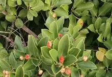 冬青卫矛,是卫矛科卫矛属灌木植物,聚伞花序,花白绿色,花萼裂片半圆形,花瓣近卵圆形,花盘肥大;蒴果近球形,熟时淡红色;叶对生,革质,倒卵形或椭圆形,先端圆钝,基部楔形,…全部>>