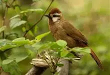 白颊噪鹛是雀形目噪鹛科噪鹛属鸟类,又称土画眉、小画眉、小噪鹃。成鸟额至头顶栗褐色,长眉纹、眼先和颊纹棕白色,眼后至耳羽深褐色,…全部>>