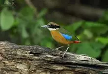 蓝翅八色鸫是雀形目八色鸫科的鸟类。体长17-20厘米,体重类约48-70克,体型圆胖,尾短,腿长,以身体具有红、绿、蓝、白、黑、黄、褐、栗等鲜艳夺目,丰富艳丽的色彩而得名,是很有观赏价值的鸟类。主要…全部>>