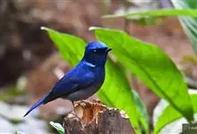 小仙鹟:体长11-13厘米,是一种深色鹟。雄鸟深蓝,脸侧及喉黑,臀白,前额、颈侧及腰为闪辉蓝色。与大仙鹟的区别在体型较小,胸蓝色,臀白色。雌鸟褐色,翼及尾棕色,颈侧具闪辉蓝色斑块,喉皮黄,项纹浅皮黄。…全部>>
