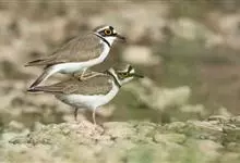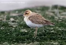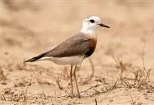 东方鸻:属小型涉禽。体重80-95克,体长220-255毫米。在夏季,前额、眉纹和头的两侧白色,头顶、背褐色或沙褐色。颏、喉白色,前颈棕色,胸棕栗色,其下有一黑色胸带紧靠其后,其余下体白色。嘴细长,…全部>>