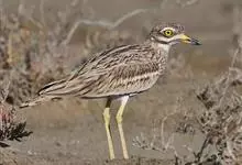石鸻,是石鸻科、石鸻属的中型涉禽,体长40-45厘米。嘴粗厚、尖端黑色,基部黄色。脚长而粗、黄色,3趾,后趾缺失。上体淡沙灰褐色具黑褐色纵纹,前额和眼先白色。眼特别大、黄色,其外有一窄的黑圈,…全部>>