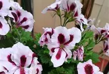 家天竺葵是牻牛儿苗科、天竺葵属多年生草本;株较高;茎直立,基部木质化,被开展长柔毛;叶互生三角状,宽卵形或肾形,基部心形或平截,具不规则锐锯齿;花梗长柔毛和腺毛;萼片披针,花冠粉红、淡红、深红或白色。…全部>>