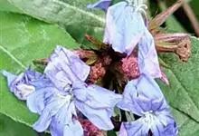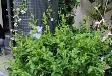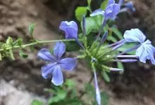 蓝花丹是白花丹科、白花丹属的常绿亚灌木。高约1米;叶薄,呈菱状卵形至狭长卵形;穗状总状花序,总花梗短,花冠淡蓝色至蓝白色,呈倒卵形,苞片呈线状狭长卵形,小苞呈狭卵形或长卵形,…全部>>