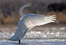 小天鹅为大型水禽,体长110~130厘米,体重4~7千克,雌鸟略小。它与大天鹅在体形上非常相似,同样是长长的脖颈,纯白的羽毛,黑色的脚和蹼,身体也只是稍稍小一些,颈部和嘴比大天鹅略短,但很难分辩。最…全部>>