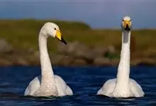 小天鹅为大型水禽,体长110~130厘米,体重4~7千克,雌鸟略小。它与大天鹅在体形上非常相似,同样是长长的脖颈,纯白的羽毛,黑色的脚和蹼,身体也只是稍稍小一些,颈部和嘴比大天鹅略短,但很难分辩。最…全部>>