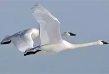 小天鹅为大型水禽,体长110~130厘米,体重4~7千克,雌鸟略小。它与大天鹅在体形上非常相似,同样是长长的脖颈,纯白的羽毛,黑色的脚和蹼,身体也只是稍稍小一些,颈部和嘴比大天鹅略短,但很难分辩。最…全部>>