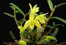 束花石斛是兰科石斛属植物。茎粗厚,肉质,下垂或弯垂,圆柱形,不分枝,具多节。叶二列,互生于整个茎上,纸质,长圆状披针形。伞状花序近无花序柄,每2-6花为一束,侧生于具叶的茎上部;花黄色,…全部>>