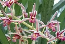莎叶兰:地生或半附生植物;假鳞茎较小,长1-2厘米,包藏于叶鞘之内。叶4-12枚,带形,常整齐2列而多少呈扇形。花葶从假鳞茎基部发出,直立,长20-40厘米;总状花序具3-7朵花;花与寒兰颇相似,有…全部>>
