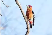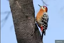 棕腹啄木鸟为啄木鸟科,啄木鸟属是中等体型的鸟类,体长约20厘米。头顶部具红色斑带。脚强健,有趾4个,其中2个向前,2个向后,各趾的趾端均具有锐利的爪,巧于攀登树木。尾羽的羽干刚硬如棘,…全部>>