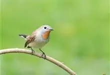 橙胸姬鹟:体长12-16厘米,是一种体型略小的林栖型鹟。尾黑而基部白,上体橄榄褐色,额具一白色横带,两端向上延伸至眼上形成眉斑。翼橄榄色,下体灰。成年雄鸟额上有狭窄白色并具小的深红色项纹,常不明显。…全部>>