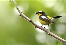 白眉姬鹟是小型鸟类,体长11-14厘米。雄鸟上体大部黑色,眉纹白色,在黑色的头上极为醒目。腰鲜黄色,两翅和尾黑色,翅上具白斑。下体鲜黄色。雌鸟上体大部橄榄绿色。腰鲜黄色,翅上亦具白斑。下体淡黄绿色。…全部>>