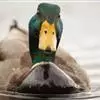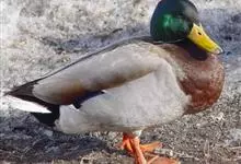 绿头鸭属游禽,大型鸭类。体长47-62厘米,体重大约1千克,外形大小和家鸭相似。雄鸟嘴黄绿色,脚橙黄色,头和颈辉绿色,颈部有一明显的白色领环。上体黑褐色,腰和尾上覆羽黑色,两对中央尾羽亦为黑色,且向…全部>>