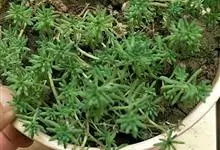 小松绿是景天科景天属植物,多肉植物,植株低矮,多分枝,株型近似球状,新枝浅绿色,以后逐渐转为灰白色,肉质叶近似针状。枝条下部的老叶容易干枯,贴在枝干上,形成类似松树皮般的龟裂,数月才脱落,…全部>>