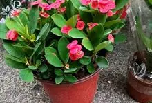 铁海棠为大戟科大戟属蔓生灌木植物;茎多分枝,具纵棱,呈旋转状;叶互生,通常集中于嫩枝上;每个花序基部边缘具微小的红色尖头;苞叶先端圆且具小尖头,无柄,上面鲜红色,下面淡红色;苞片丝状;子房光滑无毛,…全部>>