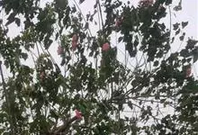 木芙蓉,锦葵科木槿属落叶灌木或小乔木。小枝上有细绒毛;叶片为卵状心形,托叶为披针形,常早落;花单生,花萼为钟形,花冠初为白色或淡红色,后逐渐变为深红色;果实为扁球形,有淡黄色的毛附着。花期8到10月。…全部>>