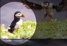 角嘴海雀,是海雀科、角嘴海雀属的中型海鸟,体长32-41厘米,嘴短而粗呈圆锥状、橙色。夏羽上嘴基部有一个三角形的突出物,形状如角。头两侧各有两条由白色丝状饰羽组成的纵带,分别位于眼上和眼下后方的头侧…全部>>