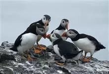凤头海雀:是鸟纲、鸻形目、海雀科的一种海鸟。体重211-322克,体长18-20厘米。前趾间有蹼膜,后趾缺如。翅窄而短小,尾短。是海鸟中体型相对较小的鸟类。雌雄羽色相似。身体羽毛上体深灰色,…全部>>