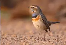 蓝点颏亦称“蓝喉歌鸲”,通称蓝靛颏儿。身体大小和麻雀相似,体长12-13厘米,体重17-18克。头部、上体主要为土褐色。眉纹白色。尾羽黑褐色,基部栗红色。颏部、喉部辉蓝色,下面有黑色横纹。下体白色。…全部>>