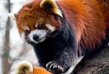 小熊猫:是小熊猫科、小熊猫属的一种动物。雌雄相似,不存在二态性。外形像猫,但较猫肥大,全身红褐色。圆脸,吻部较短,脸颊有白色斑纹。耳大,直立向前。四肢粗短,为黑褐色。尾长、较粗而蓬松,…全部>>