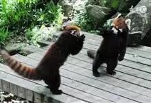 小熊猫:是小熊猫科、小熊猫属的一种动物。雌雄相似,不存在二态性。外形像猫,但较猫肥大,全身红褐色。圆脸,吻部较短,脸颊有白色斑纹。耳大,直立向前。四肢粗短,为黑褐色。尾长、较粗而蓬松,…全部>>