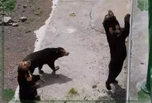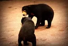 马来熊,是食肉目熊科马来熊属哺乳动物。体胖颈短,眼睛和耳朵小;头部短圆;全身乌黑光滑;鼻唇周为棕黄色,裸露无毛;眼圈为灰褐色,趾基部连有短蹼;胸斑中央有一个毛旋,颈部周围的一圈皮肤极松弛,…全部>>