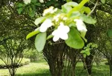 琼花是荚蒾科荚蒾属落叶或半常绿灌木植物,又名扬州琼花、蝴蝶木、八仙花、聚八仙、蝴蝶戏珠花、毛琼花。琼花高达4米;树皮灰褐色或灰白色。叶纸质,卵形至椭圆形或卵状矩圆形。聚伞花序,花冠白色,辐状。…全部>>