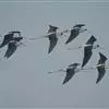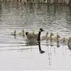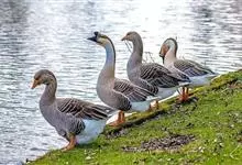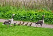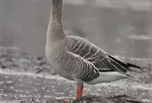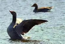 灰雁:体长70-90厘米,翼展147-182厘米,体重2.5-4千克,寿命17年。体大而肥胖。嘴、脚肉色,上体灰褐色,下体污白色,飞行时双翼拍打用力,振翅频率高。脖子较长。腿位于身体的中心支点,…全部>>