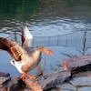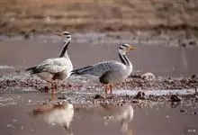 斑头雁是雁形目鸭科雁属鸟类,又称白头雁、黑纹头雁。通体大都灰褐色,头和颈侧白色,头顶有两道黑色带斑;虹膜暗棕色,嘴橙黄色,嘴甲黑色,脚和趾橙黄色;背部淡灰褐色,羽端缀有棕色,形成鳞状斑;颏、喉污白色,…全部>>
