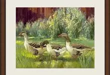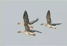 灰雁:体长70-90厘米,翼展147-182厘米,体重2.5-4千克,寿命17年。体大而肥胖。嘴、脚肉色,上体灰褐色,下体污白色,飞行时双翼拍打用力,振翅频率高。脖子较长。腿位于身体的中心支点,…全部>>