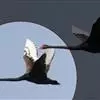 黑颈鹤:是鹤科、鹤属的大型涉禽,体长110-120厘米,体重4-6千克。颈、脚甚长,通体羽毛灰白色,头部、前颈及飞羽黑色,眼先和头顶前方裸露的皮肤呈暗红色,尾羽褐黑色。头顶,三级飞羽的羽片分散,…全部>>