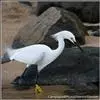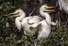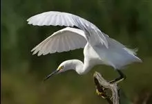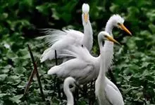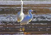雪鹭:全身洁白的羽毛,颈背有丝状蓑羽。有一双亭亭玉立黄色长腿和一个黑色的鸟喙。在繁殖季节,鼻孔和眼睛之间的区域会由黄色变成红色。幼鸟类似成鸟,喙基略苍白,腿有背部绿色。嘴长而尖直,翅大而长,脚和趾均…全部>>