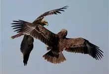 白肩雕:又名御雕,是大型猛禽。体长73-84厘米。体羽黑褐色,头和颈较淡,肩部有明显的白斑,在黑褐色的体羽上极为醒目,很远即可看见,这是区别其他雕的主要特征。滑翔时两翅平直,滑翔和翱翔时两翅亦不上举…全部>>