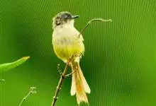 普通缝叶莺,是雀形目鹅科莺亚科缝叶莺属一种。体长10-14厘米,体重7-10克,雄鸟前额棕红,头顶至枕棕橄榄褐,上体橄榄绿染黄,飞羽及尾羽暗褐;繁殖期雄鸟的中央尾羽特形延长,下体淡皮黄白色。…全部>>