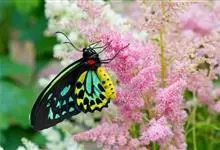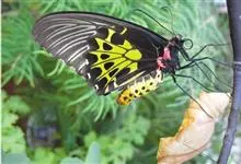 金裳凤蝶是凤蝶科、裳凤蝶属的动物。金裳凤蝶身体呈黑色,头、颈和胸侧有红毛,腹部有黑黄两色相间条纹,雄蝶前翅黑色,具黑天鹅绒光泽,各脉两侧灰白色,后翅金黄色,各室外缘有等腰三角形黑斑1枚,斑内侧有晕,…全部>>