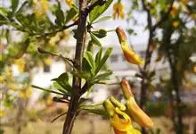 柠条锦鸡儿是豆科锦鸡儿属植物,灌木,有时小乔状,高1-4米;老枝金黄色,有光泽;嫩枝被白色柔毛。羽状复叶有6-8对小叶;托叶宿存;叶轴脱落;小叶披针形或狭长圆形,先端锐尖或稍钝,有刺尖,灰绿色。花梗…全部>>