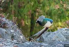 锦鸡是鸡形目雉科锦鸡属鸟类动物。锦鸡是白腹锦鸡、红腹锦鸡的统称,雄鸟的头顶、背、胸为金属翠绿色,羽冠紫红色,后颈披肩羽白色,具黑色羽缘,下背棕色,腰朱红色;飞羽暗褐色,尾羽长,有黑白相间的云状斑纹,…全部>>
