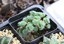 小松绿是景天科景天属植物,多肉植物,植株低矮,多分枝,株型近似球状,新枝浅绿色,以后逐渐转为灰白色,肉质叶近似针状。枝条下部的老叶容易干枯,贴在枝干上,形成类似松树皮般的龟裂,数月才脱落,…全部>>