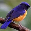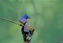 棕腹大仙鹟:体重24-28克,体长15-17厘米,是一种小型的色彩亮丽的鹟。雄鸟上体深蓝,下体棕色,脸黑,额、颈侧小块斑、翼角及腰部亮丽闪辉蓝色。与棕腹仙鹟易混淆,区别在色彩较暗。雌鸟灰褐,…全部>>
