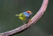 栗头鹟莺为鹟科、鹟莺属的鸟类。全长75-100毫米。前额、头顶至后枕棕栗色;侧冠纹黑色;上背沾灰,下背橄榄绿,腰和尾上覆羽亮黄色;眼圈白色,…全部>>