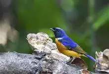 棕腹蓝仙鹟,Niltava vivida,鹟科仙鹟属的一种小型鸣禽,善在空中飞捕昆虫,中等体型18厘米,上体蓝,下体棕色,具黑色眼罩,胸橘黄渐变成臀部的皮黄色。国内分布于四川、云南、西藏和台湾等地。…全部>>