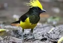 冕雀:共有4个亚种。体长20-21厘米,体重34-49克。具蓬松的黄色长型冠羽。雌鸟似雄鸟,但喉及胸深橄榄黄色,上体沾橄榄色。不会被误认的体大的黄色及黑色山雀。混群栖于原始林及次生林的林冠层,…全部>>
