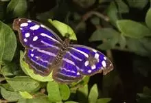 大紫蛱蝶为大型蝶种,翅展约86~110mm。翅紫黑色,有白色斑点点缀其中,雄蝶的翅具强烈紫色虹彩,其余部分暗褐色,后翅臀角具粉色斑。雌蝶体型较大,但是没有蓝紫金属光泽。原产于东亚的蝶类。…全部>>