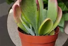 唐印为景天科伽蓝菜属的多年生肉质草本植物。植株中型,株高50厘米,宽20厘米,多分枝;叶片肉质,对生,卵形,全缘,先端钝圆,叶片淡绿色至灰绿色,表面被有厚厚的白粉,光照充足时,叶缘呈红色;圆锥花序,…全部>>