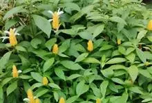 金苞花是爵床科、金苞花属的常绿草本植物。叶长圆形或披针形,先端渐尖,基部通常楔形,下面主脉被微柔毛;顶生穗状花序由密、短的总花梗组成,卵形苞片膜质,下部的近心形,小苞片披针形或匙形,与花萼等长,…全部>>