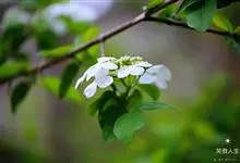 蝴蝶戏珠花 Miq.)是荚蒾科荚蒾属植物。落叶灌木,高达3米;当年小枝浅黄褐色。叶较狭,宽卵形或矩圆状卵形,有时椭圆状倒卵形。花序直径4-10厘米,外围有4-6朵白色、木型的不孕花。果实先红色后变黑色,…全部>>