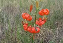 山丹是百合科百合属的多年生草本植物。鳞茎卵形或圆锥形,鳞片长圆形或长卵形,白色;叶散生茎中部,线形,边缘有乳头状突起;花单生或数朵成总状花序,花鲜红色,常无斑点,花被片反卷,…全部>>