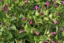 即紫茉莉,英文名:Four-o'clock,Marvel of Peru,为紫茉莉科、紫茉莉属多年生草本植物,一年生栽培。株高50~80cm。根粗壮,茎多分枝而散生。叶对生,卵形或心脏形。花数朵簇生…全部>>